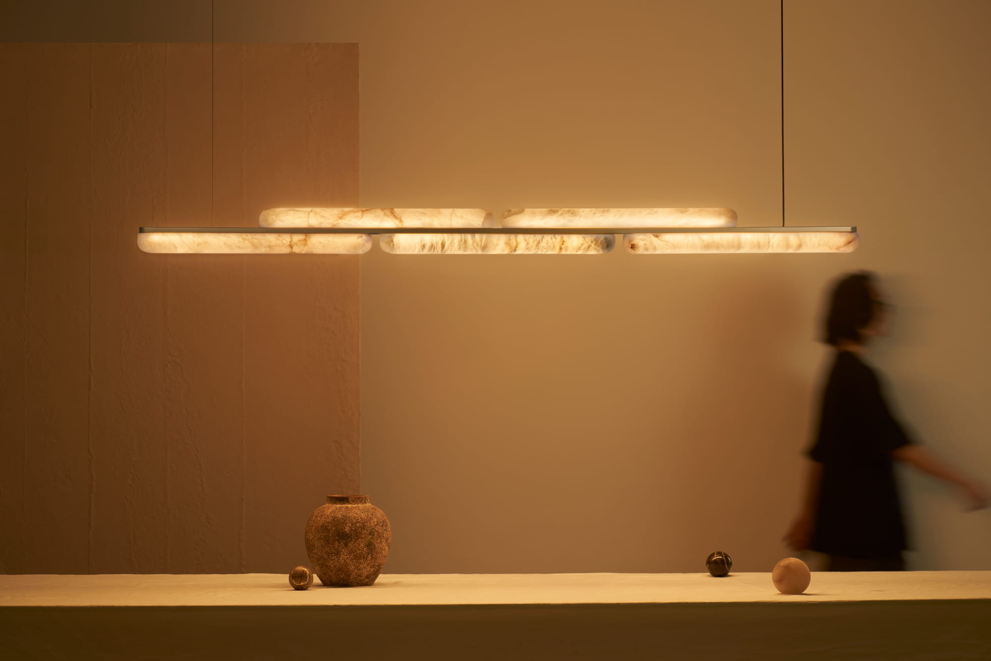 Set against cave-like natural textures, this project creates an atmosphere where the primal and the futuristic intertwine. The TIME CAPSULE Series by AUROVO, with its lighting and furniture, acts as vessels of time—casting gentle light across flowing wall curves, transforming every dining experience into a journey through time and space.
